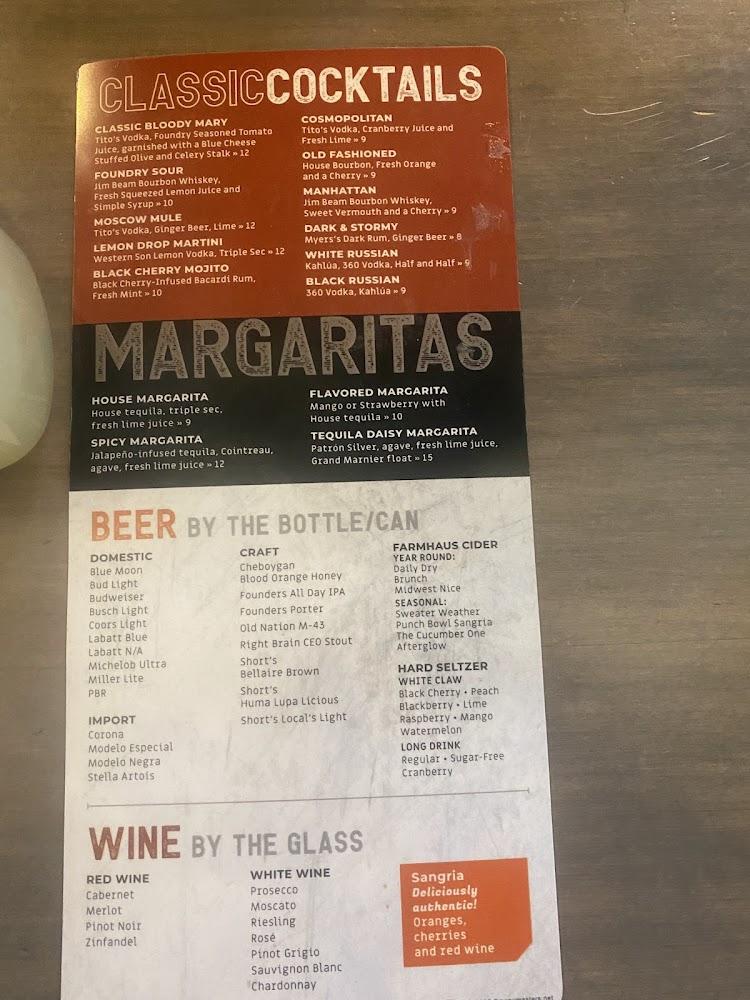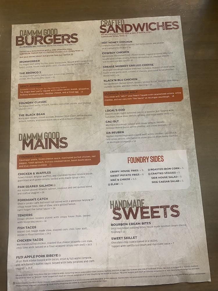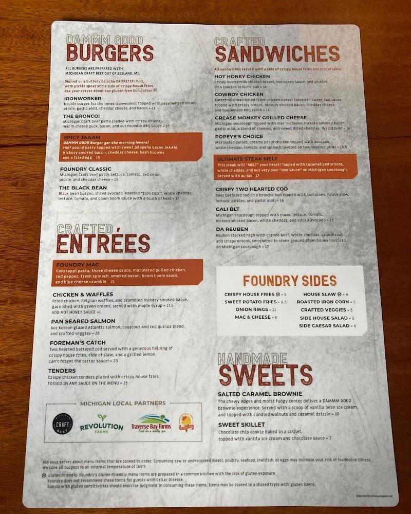 Desserts like the Salted Caramel Brownie offer a sweet ending. The drink menu features local beers, crafted cocktails, and a selection of wines. It’s evident that Foundry Craft Grillery takes great care in crafting a memorable meal for each guest.